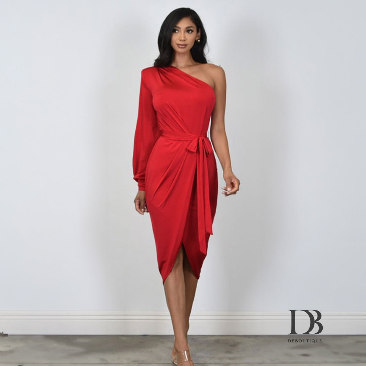 Dazzle in our Ravishing Ruby Red Elegance Dress. This stunning red dress combines timeless elegance with a touch of glamour, making it the perfect choice for special occasions and formal events.